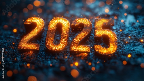 Glowing '2025' Numbers with Sparkling Festive Lights, Symbolizing the New Year Celebration and Future Hope