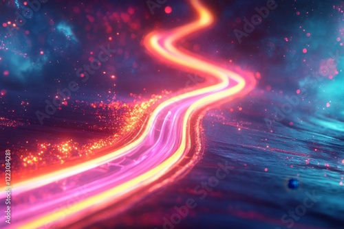Glowing Abstract Road with Bright Lights in Cosmic Background