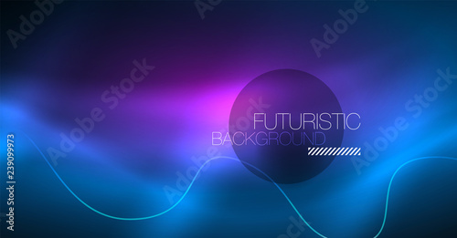 Glowing abstract wave on dark, shiny motion, Christmas and New Year magic space light. Techno abstract background