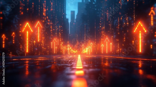 Glowing Arrows Pointing Upwards in a Dark Background