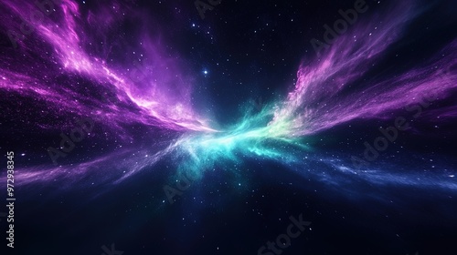 Glowing aurora borealis effect in starry night sky.