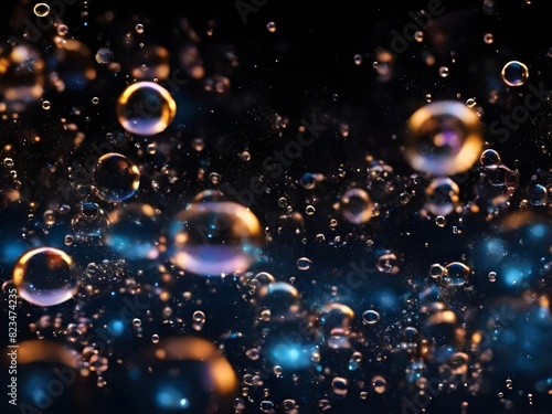 Glowing background with bubbles and stars bubbles isolated on black glowing background. Generative AI