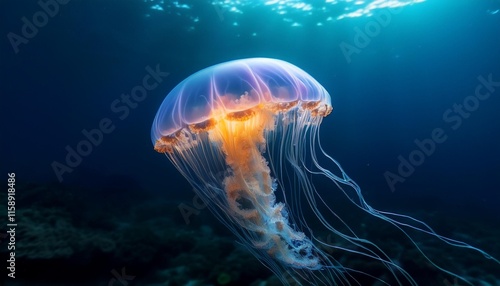 Glowing Bioluminescent Jellyfish Drifting Serenely in the Deep Ocean