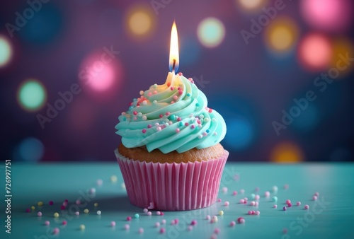 Glowing Birthday Cupcake with Pink Frosting and Sprinkles Generative AI
