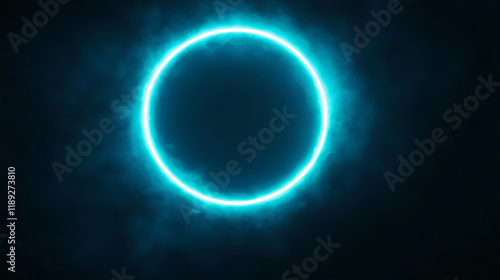 Glowing Blue Circle in Dark Space moon Abstract Background
