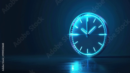 glowing blue clock with neon lights against dark background, symbolizing time and modernity. sleek design adds futuristic touch to any space