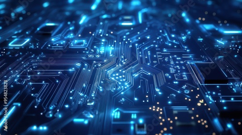 Glowing Blue Digital Circuit Board Futuristic Technology Background