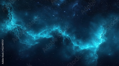 Glowing blue nebula in deep space with scattered stars and cosmic dust