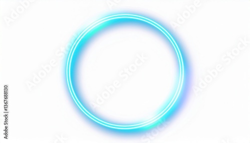 glowing blue neon energy ring with soft light aura on white background, futuristic portal frame, sci-fi loop element for digital art, backgrounds, UI design, or cyber themed projects