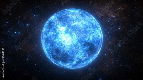 Glowing blue planet in outer space.