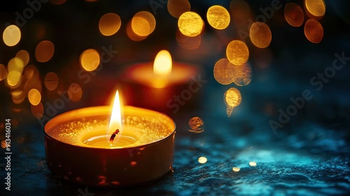 Glowing candles in the dark with a bokeh effect, capturing a tranquil and calming ambiance.