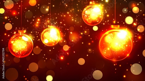 Glowing Christmas Ornaments with Sparkles and Bokeh Background