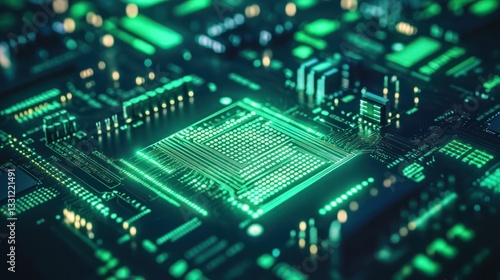 Glowing Circuit Board: A Microscopic View of Technological Innovation