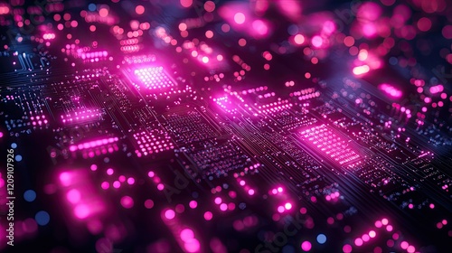 Glowing Circuit Board, Digital Data Flow, Tech Background, Abstract Design