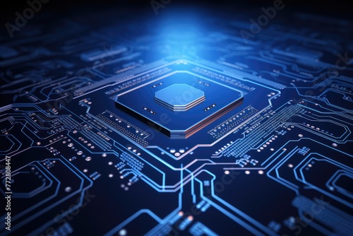glowing circuit board ,Futuristic circuit board on a blue background 3d rendering Artificial intelligence Technology web background Virtual concept, AI generated