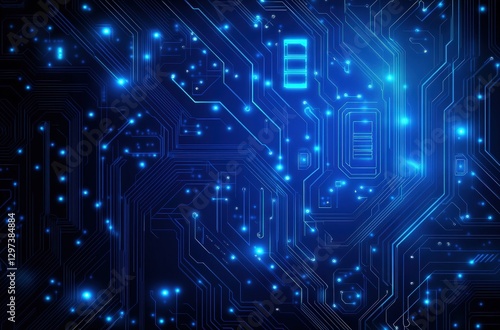 Glowing circuit board pattern background in blue hues for tech concept or innovation presentation