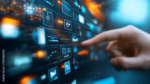 Glowing Cloud based Streaming Network Displaying Digital Media and Analytics on a Futuristic Computer Interface Technology Data Analysis and Business Intelligence Concept