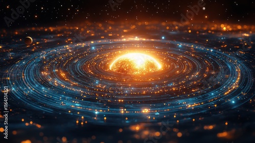 Glowing cosmic galaxy with bright star at center, swirling nebula, and vibrant colors.