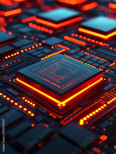 Glowing CPU on Circuit Board