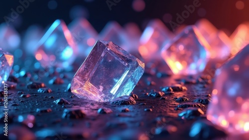 Glowing Crystal Clusters Neon Pink Blue Illuminated Gems on Dark Surface