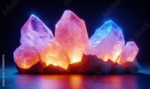 Glowing crystals cluster, dark background, energy, spiritual, website design
