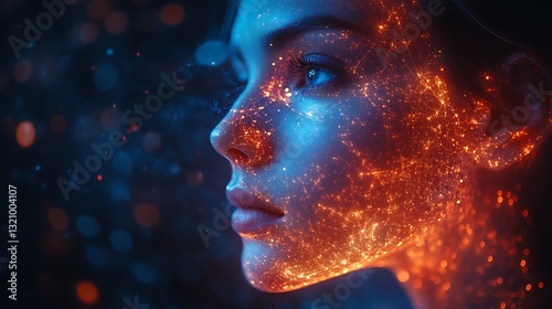 Glowing cybernetic mind with vast digital connectivity and deep blue radiance