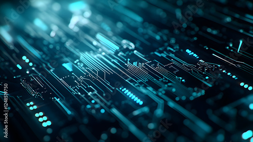 Glowing data streams in blue, creating a futuristic feeling of information flow and connectivity.