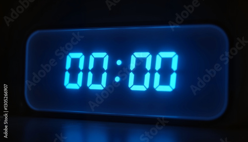 Glowing digital clock displaying midnight in dark atmosphere, time concept