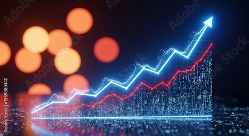Glowing Digital Financial Growth Chart with Upward Trend and Data Points