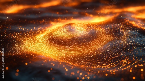 Glowing Digital Fingerprint with Flowing Data Streams Representing Identity and Security in the Age of Technology