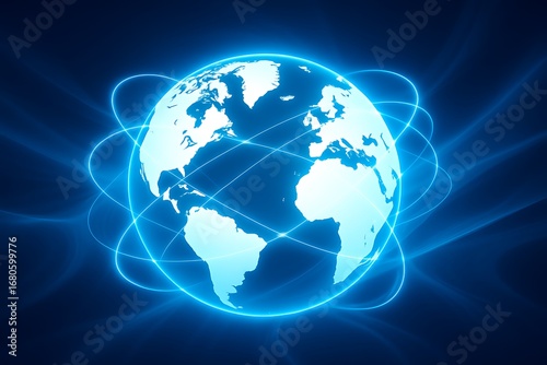 Glowing digital planet earth with shiny light effect and technology connection illustrating global communication networking innovation data transfer visualization