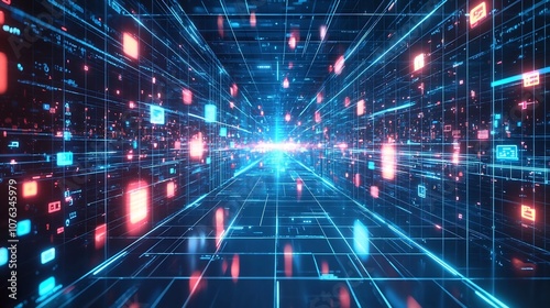 Glowing Digital Workspace with Connected Worker Avatars Representing Collaborative Virtual Environment
