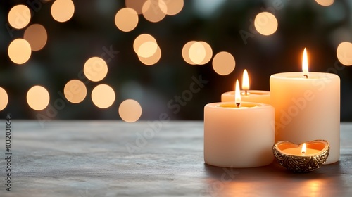 Glowing Diwali candles casting a warm soft glow and creating a cozy intimate atmosphere in a dimly lit room The gentle flames add a sense of festivity spirituality and tranquility to the space