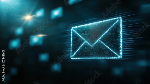 Glowing email envelope on vibrant, illuminated backdrop, symbol of modern digital communication