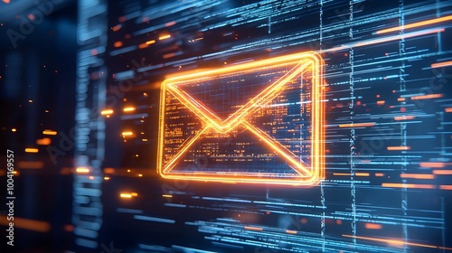 Glowing Email Icon Floating Out of Computer Screen with Light Trails