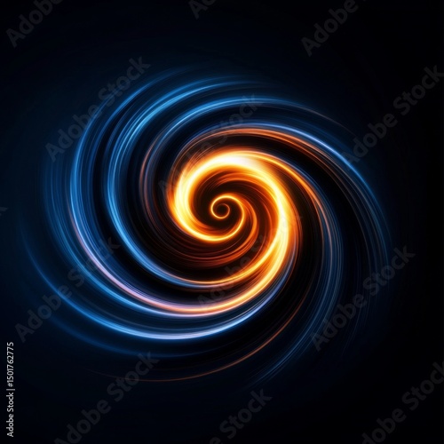 Glowing Energy Spiral Abstract Blue and Orange Light Trails on Dark, light effect ,Abstract art