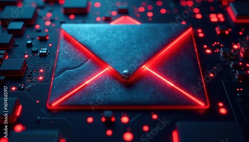 Glowing envelope, metallic key, circuit board , protection, envelope icon, confidential