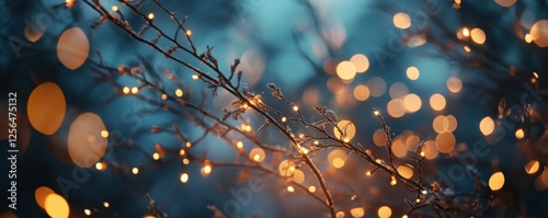 Glowing fairy lights adorning frosty branches in winter wonderland