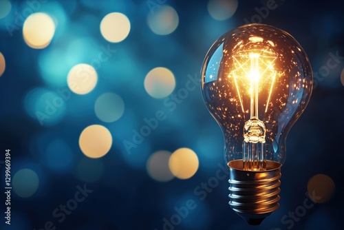 Glowing Filament in a Glass Light Bulb Against a Dark Blue Bokeh Background Idea Light Inspiration