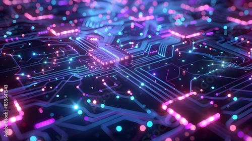 Glowing Futuristic Circuit Board Backdrop with Flowing Energy Connections