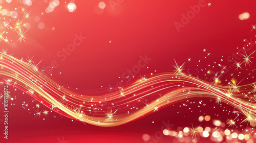 Glowing golden waves with sparkling stars on a rich red background, creating a festive and celebratory atmosphere