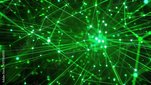 Glowing green neural network. Artificial intelligence. Plexus. 3D rendering.
