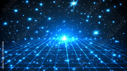 Glowing Grid, Starry Night, Futuristic Landscape, Abstract Background, Tech Design