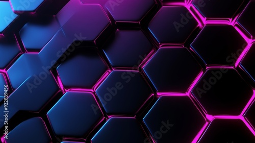 Glowing hexagon honeycomb, neon colors, intense contrast, energetic feel, futuristic and digital, sharp and vibrant