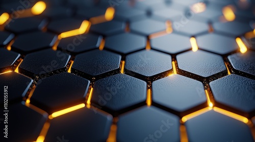 Glowing hexagonal pattern with futuristic metallic texture and illuminated edges