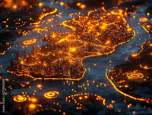 Glowing Holographic Map of a Smart Grid Powered City with Real Time Energy Efficiency Zones