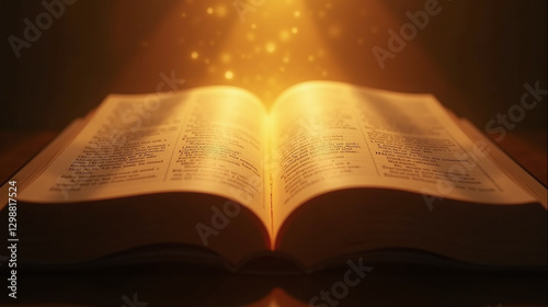 Glowing Holy Bible Illuminating Ancient Sacred Words Of Faith