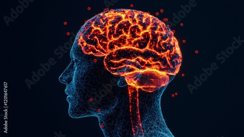Glowing Human Brain Anatomy Neurological System Neural Network 3D Medical Illustration
