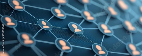 Glowing human symbols in a blue network, illustrating the concept of digital connections in social media technology