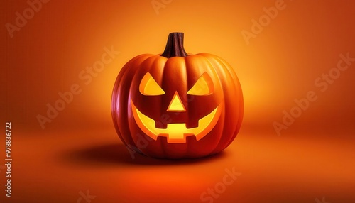 Glowing Jack-O'-Lantern with an Evil Grin Illuminates a Vibrant Orange Background, Capturing the Spooky and Festive Spirit of Halloween. Banner Wallpaper Poster With Copy Space